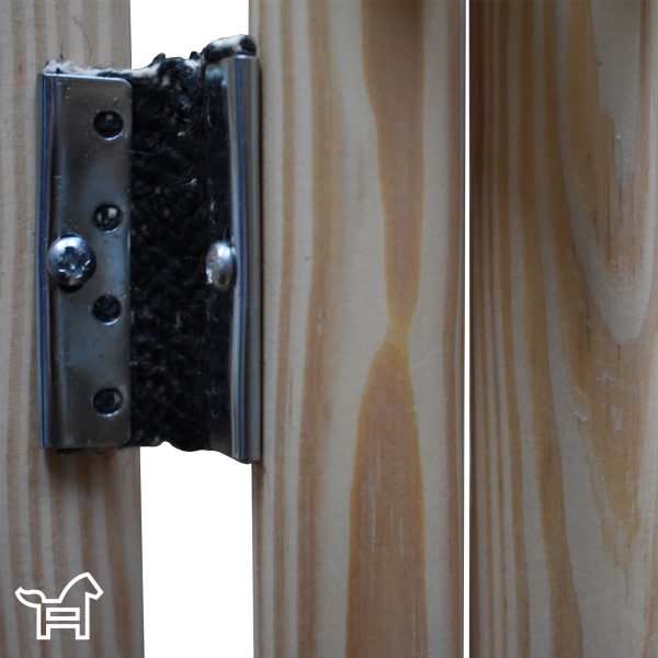 Strong hinges created with herringbone webbing and Pirelli stainless steel clips.